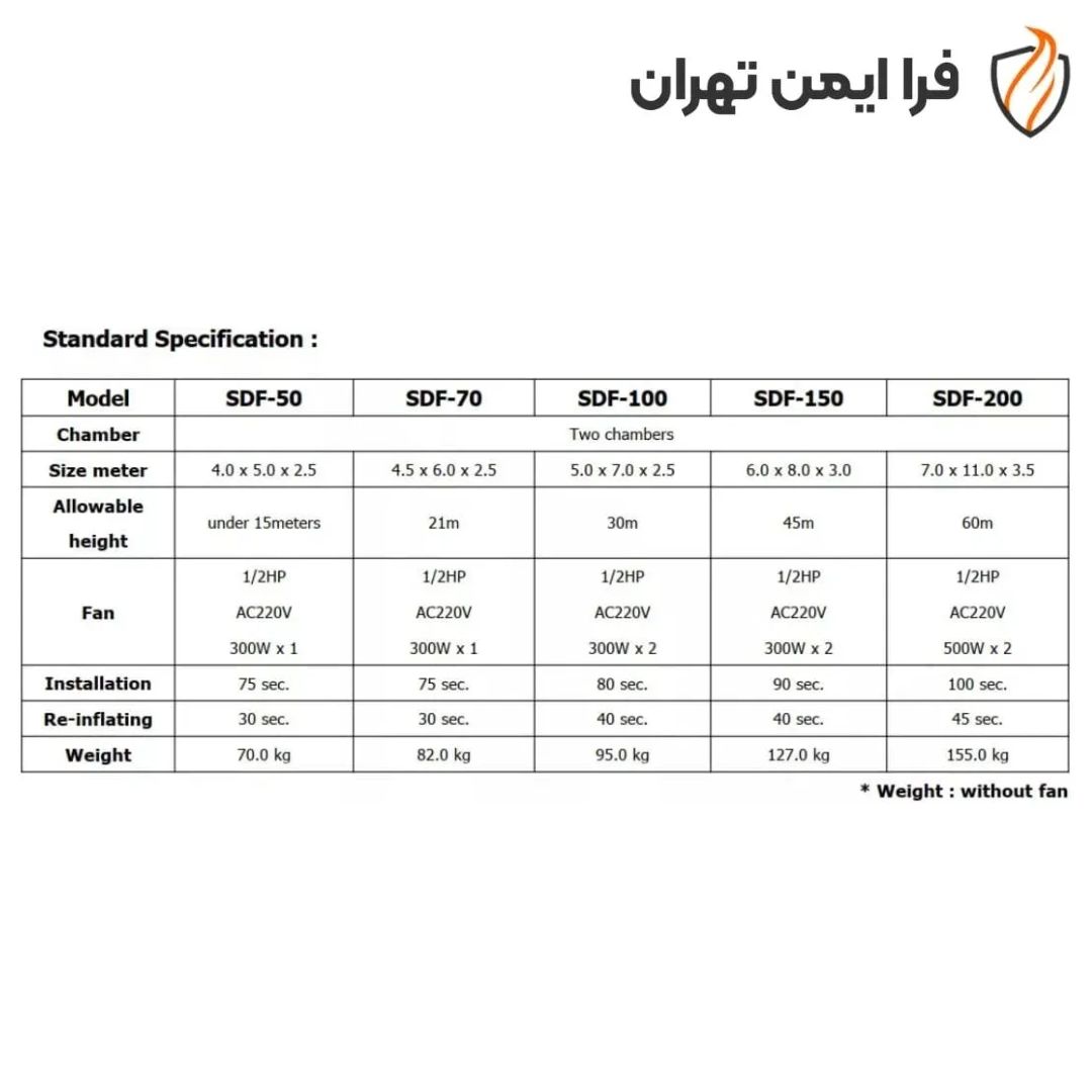 تشک نجات ضد حریق، فن تایپ shilla fire مدل SDF70