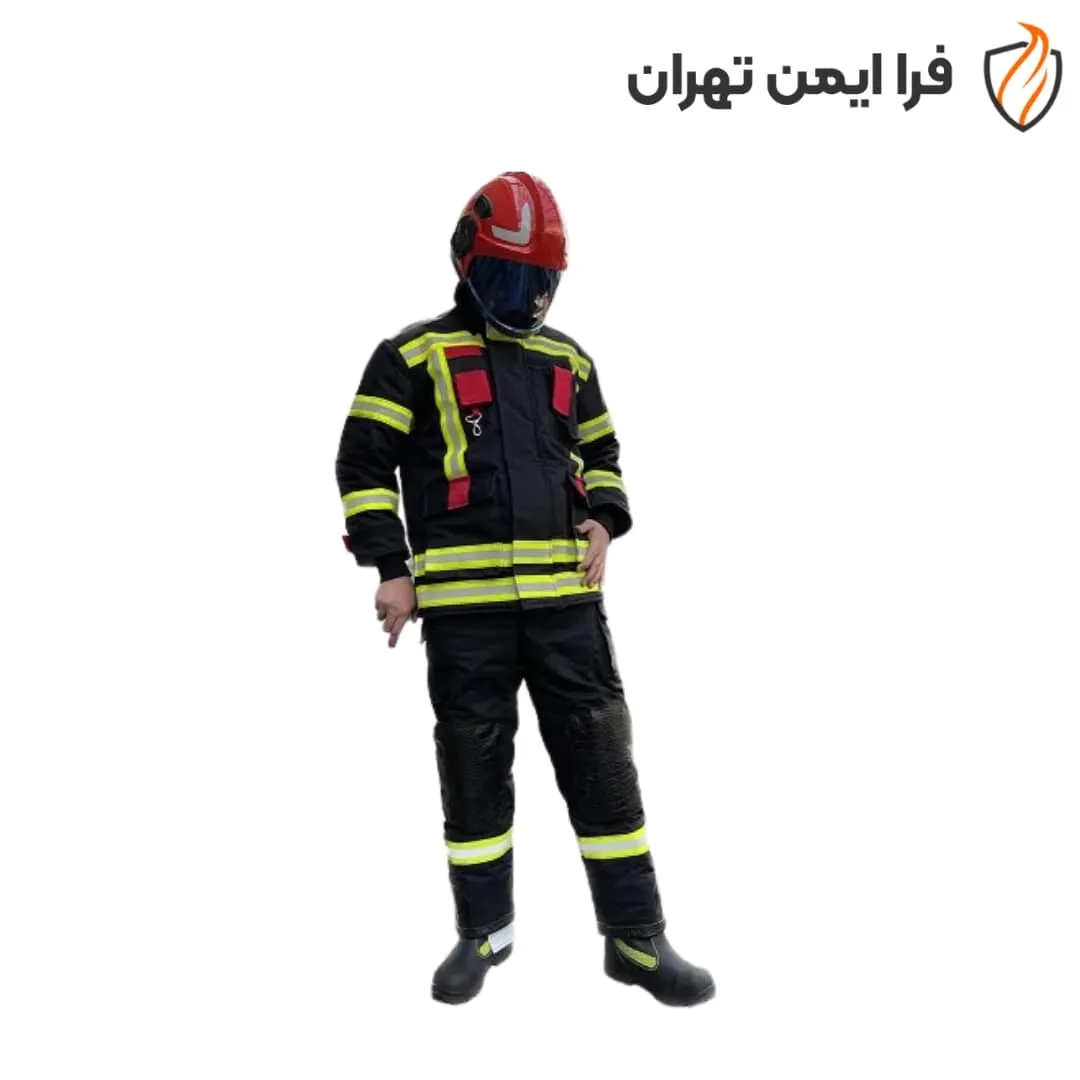 - این لباس آتشنشانی با پارچه کتان نسوز سه لایه ساخته شده که در برابر حرارت، شعله و سایش مقاومت بالایی دارد.